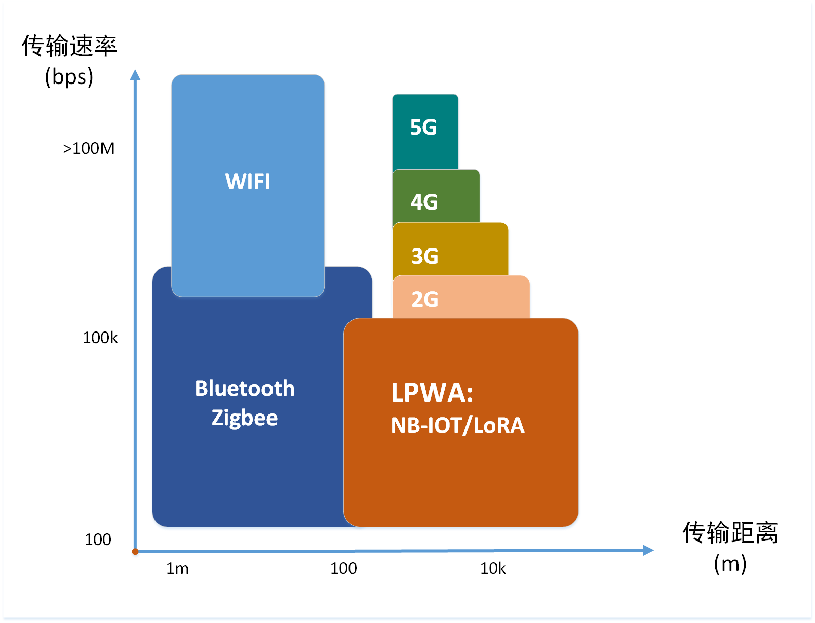 各無線通訊技術傳輸速率和傳輸距離對比