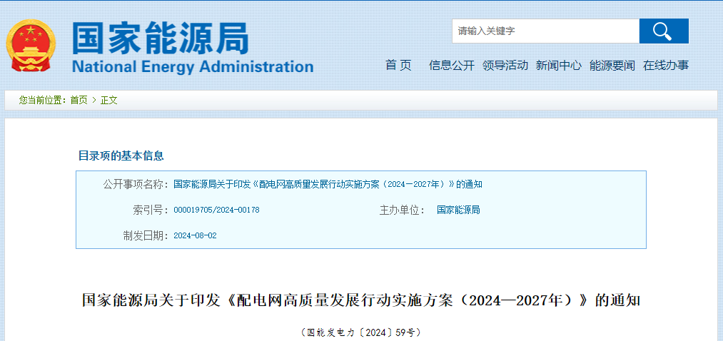 ? ? ? 前不久,國家能源局發(fā)布《配電網(wǎng)高質量發(fā)展行動實施方案(2024—2027年)》,其中提出,未來三年工作重點將圍繞供電能力、抗災能力和承載能力提升,結合各地實際,重點推進四個一批建設改造任務。
