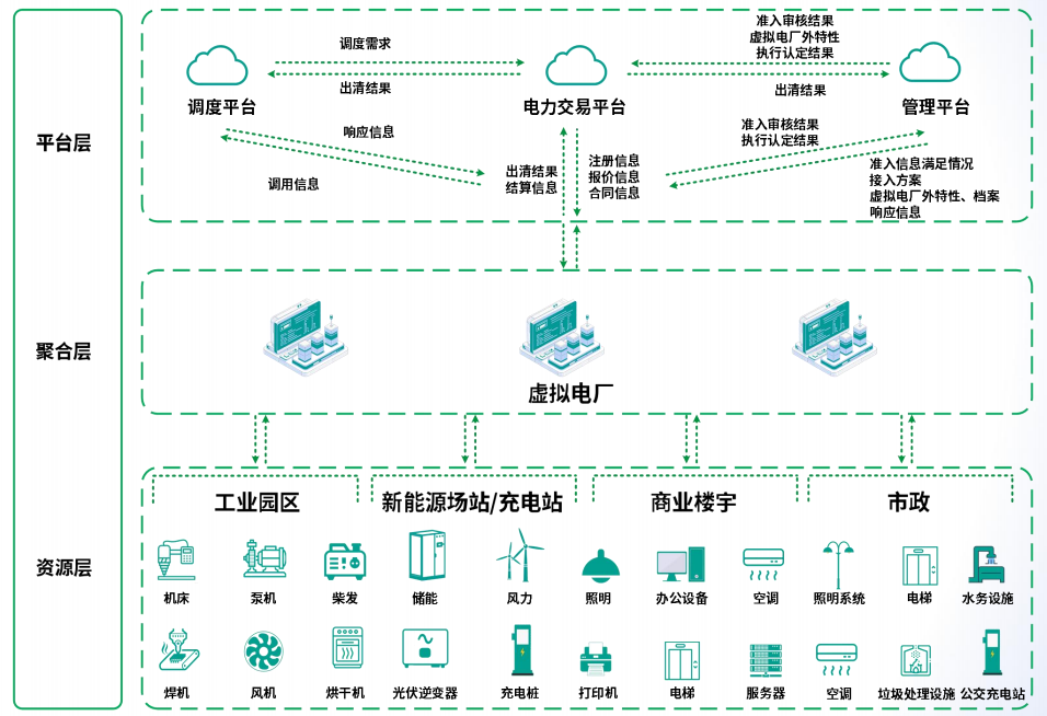 公司是泰州“首家”完成虛擬電廠注冊的企業,虛擬電廠作為一種智慧能源管理系統,被稱為能源產業鏈的“最后一公里“,其核心是將分布式的發電設備、儲能系統、電動汽車、可調節負荷等資源聚合起來,通過智能算法和通信技術統一調度,使其能夠像傳統發電廠一樣參與電力市場交易或響應電網需求,從宏觀層面上,實現能源的高效利用和電網穩定運行。