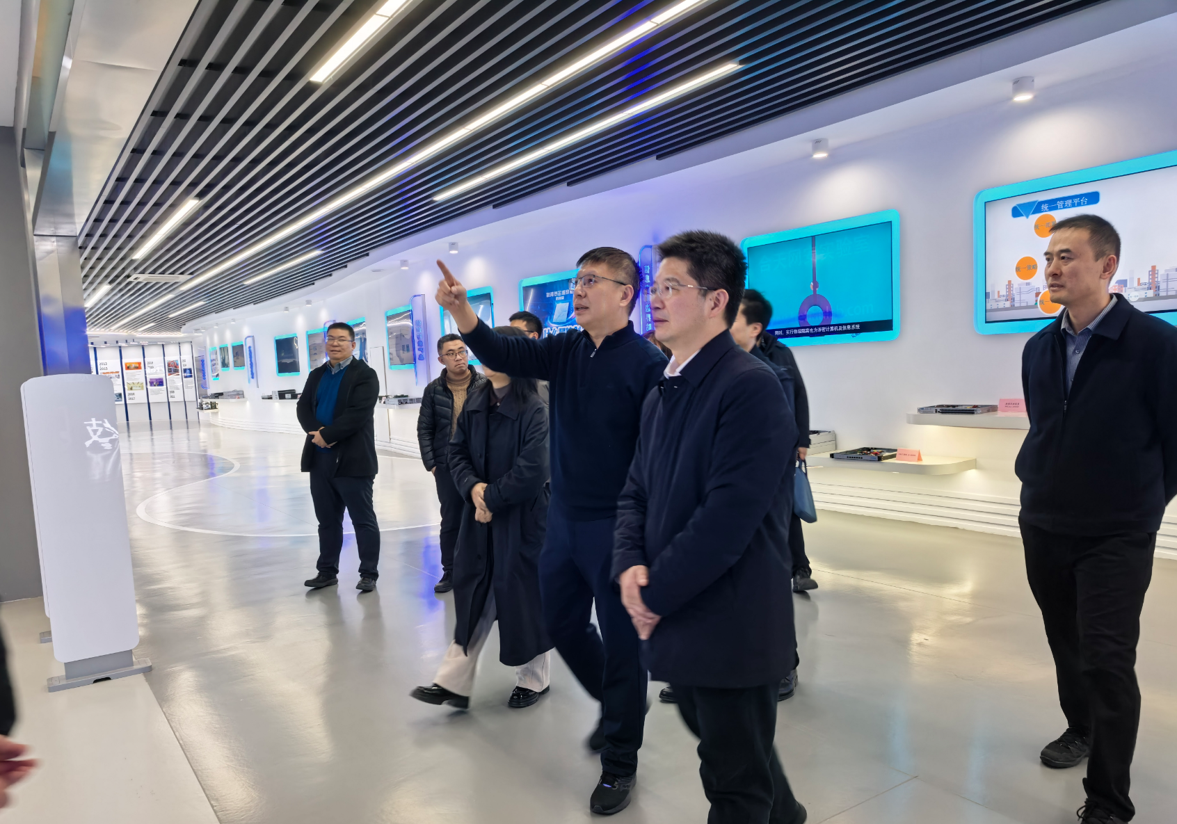 考察伊始,在董事長高南的帶領下,朱松青副校長一行首先參觀了云涌科技展廳。展廳內,高南董事長詳細介紹了公司的發展歷程、核心技術優勢、新能源領域戰略布局及相關產品應用成果,重點展示了公司在虛擬電廠、儲能技術等前沿領域的研發進展與實踐案例,讓考察團一行對云涌科技的創新實力與產業影響有了全面深入的了解。